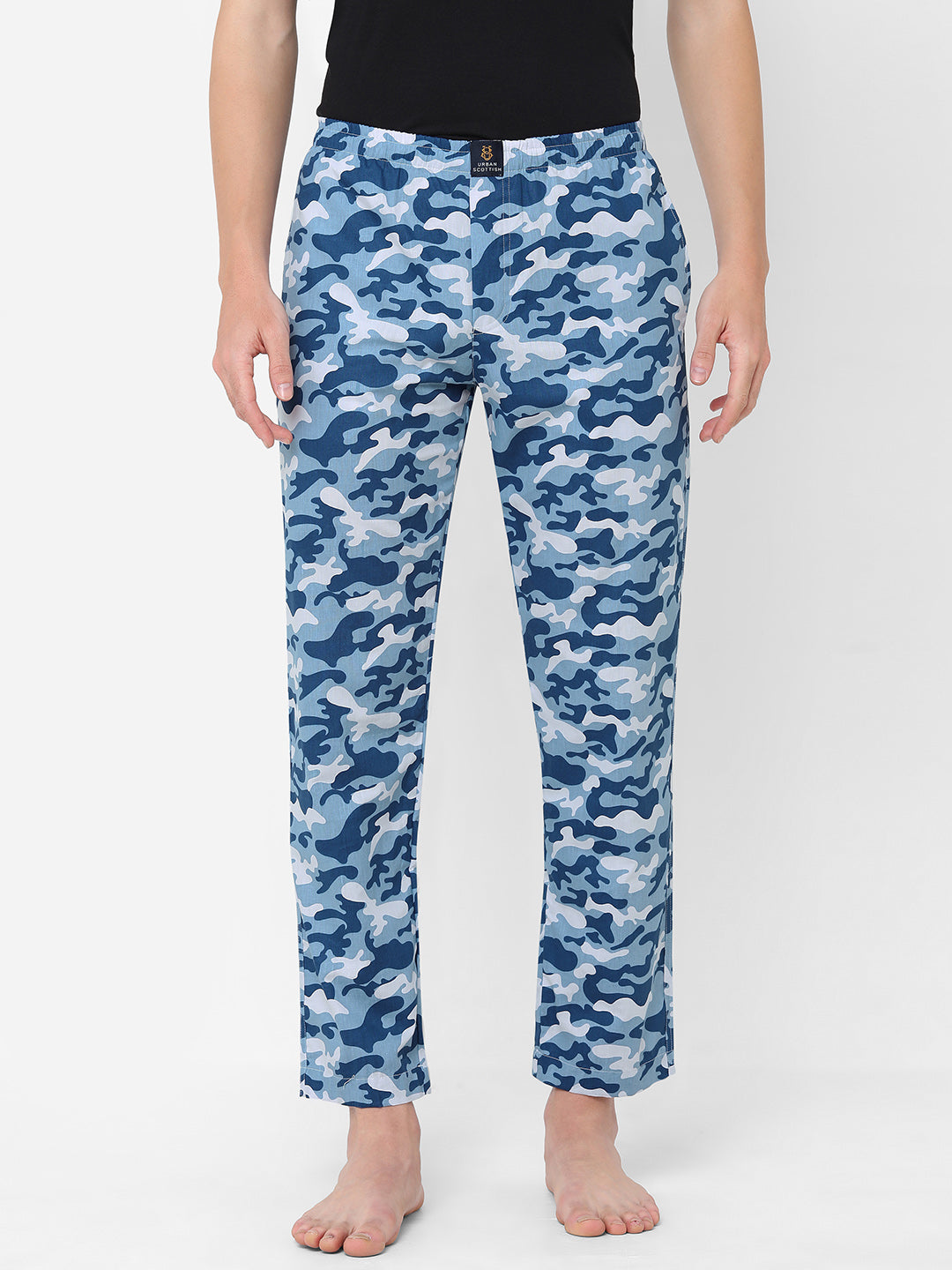 Update your casual wear collection by getting yourself this stunning Blue Lounge Pant from the latest collection of Urban Scottish. It features an elasticated waistband with a brand logo on the front and comes with two side pockets. Adorned with a camouflage printed pattern, it makes up for a stylish choice. Crafted with Pure Cotton, it ensures a great comfort and breathability all day long. Perfect for lounge wear. Team it with a solid t-shirt and a pair of slip-ons to complete the look.