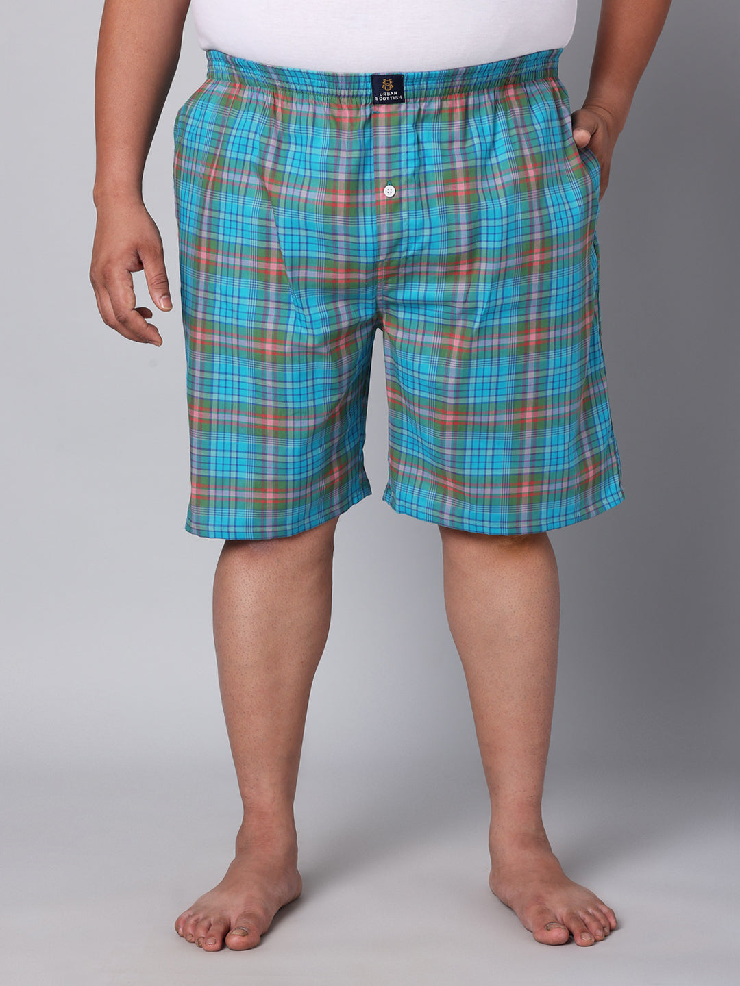 Upgrade your loungewear collection with the Urban Scottish Men's Plus Size Boxers. These comfortable and stylish boxers are designed to provide the perfect blend of fashion and functionality. Made with premium quality 100% cotton fabric, they offer exceptional comfort and breathability, making them ideal for everyday wear. The regular fit and mid-rise design ensure a flattering look for all body types, while the elastic closure provides a secure and adjustable fit. With a classic checks pattern in aqua color, these boxers add a trendy touch to your outfit. The two side pockets design allows you to conveniently store your essentials. Suitable for casual occasions, these boxers are perfect for relaxing at home or running errands. Invest in the Urban Scottish Men's Plus Size Boxers and experience unmatched comfort and style.