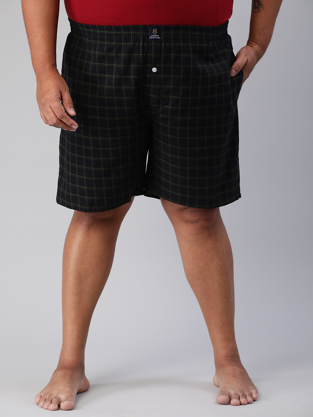 Enjoy seaside vacation in these Black Cotton Boxers from Urban Scottish. Made with 100% Cotton fabric ensuring comfort and breathability all day. Offers a comfortable waist with above knee length for ease of movement. Feature pockets and waistband and has been elevated with a checked pattern. Team it with cool t-shirts for a complete look. Perfect for a casual look.