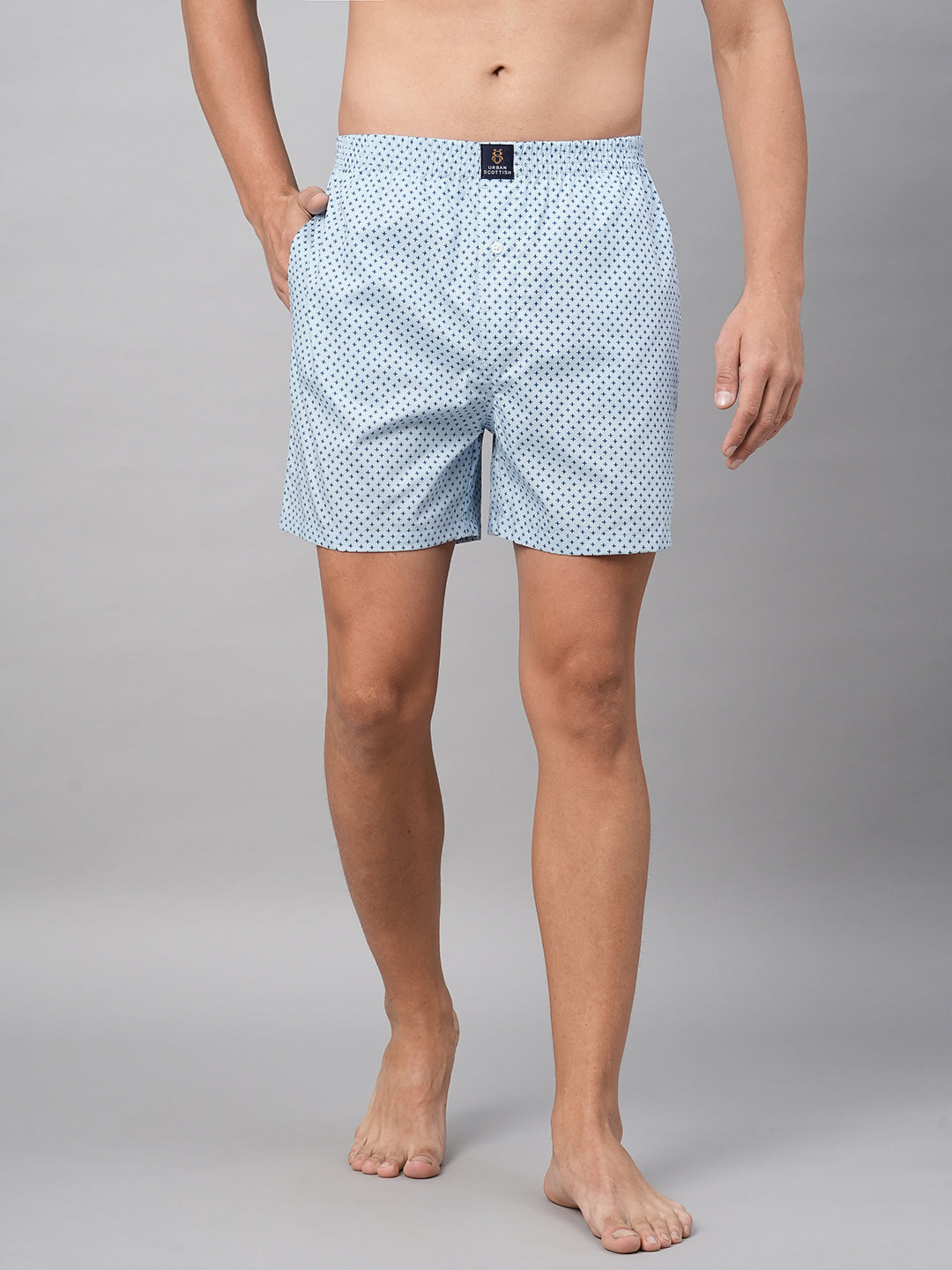 Enhance your spirit with this relaxed Fit Turquoise Printed Boxer Shorts from the latest arrival of Urban Scottish's Men's Collection of Comfort. Made of Light, ,breezy, airy & Soft 100% Cotton fabric for the cozy and rich feels all day long. Adorned with gleaming and chilly prints . Inner Elastic waistband and 2-side Pocket are the draughty involvements with skilled tailoring for easy spirit. To match with Dark Color Round Neck T-shirts and relaxed footwears. Authentic for Jogging, Nighwalks, Casual Roamings and Sleeptime. Model is wearing 'M' size
