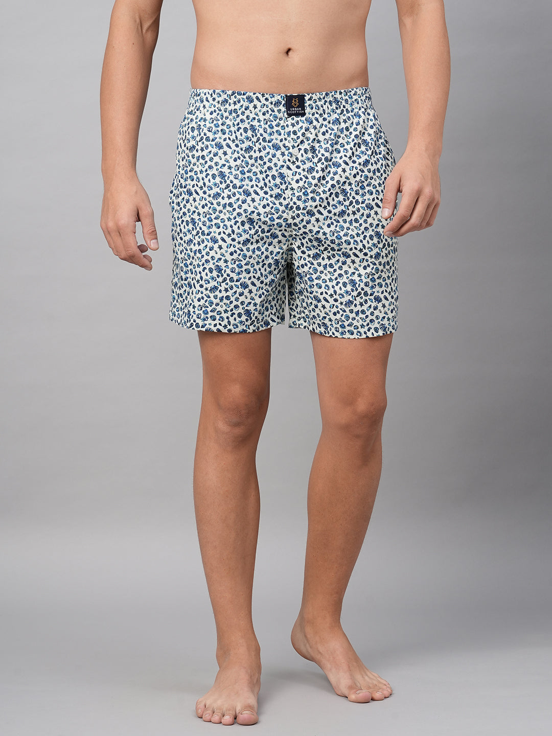Blazon your reliant spirit with this relaxed Fit Black Printed Boxer Shorts from the latest arrival of Urban Scottish's Men's Collection of Comfort. Made of Light, ,breezy, airy & Soft 100% Cotton fabric for the cozy and rich feels all day long. Adorned with gleaming and glossy prints . Inner Elastic waistband and 2-side Pocket are the modest involvements with skilled tailoring for easy spirit. To match with Light Color Round Neck T-shirts and relaxed footwears. Authentic for Jogging, Nighwalks, Casual Roamings and Sleeptime. Model is wearing 'M' size