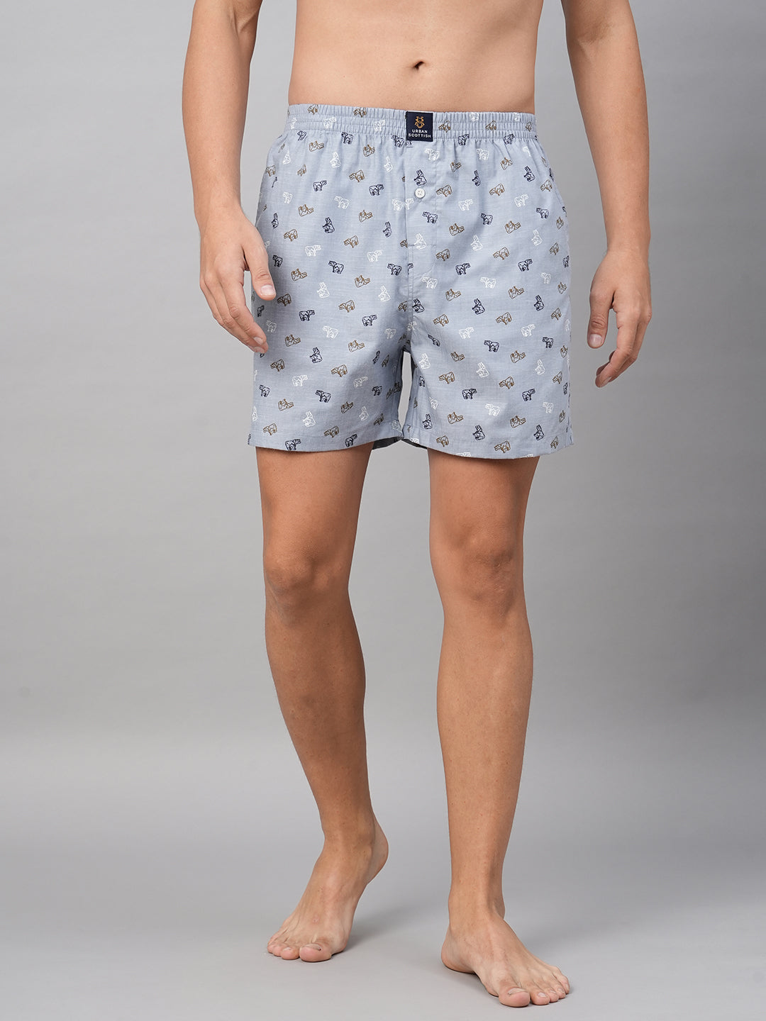 Men's Grey, 100% Cotton, Printed, Regular Fit, Inner Elastic, Mid-Rise, Boxers