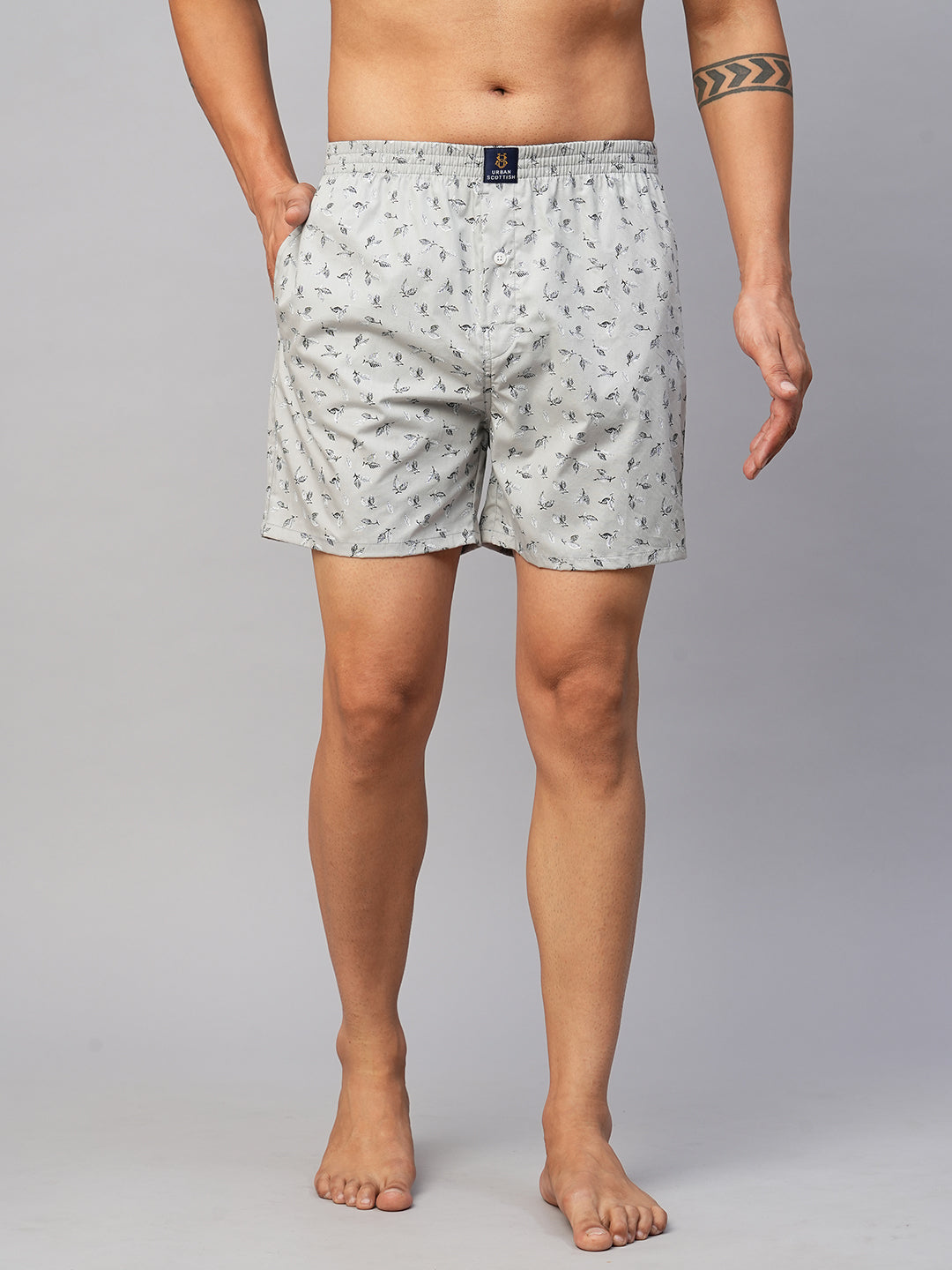 Introducing the Urban Scottish Men's Grey Printed Boxer, the perfect combination of style, comfort, and functionality. Crafted from pure cotton fabric, these boxers are designed to provide the utmost comfort throughout the day. Whether you're lounging at home or heading out for a casual outing, these boxers are a must-have addition to your wardrobe.