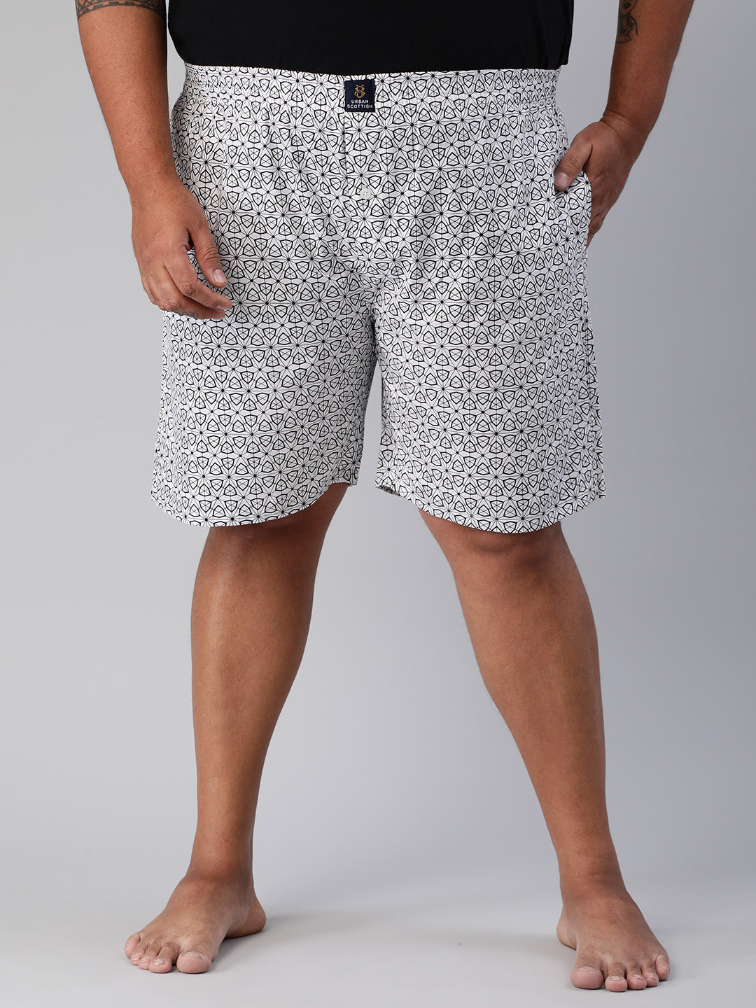 Enjoy your lazy summer days in these Grey Cotton Boxers from Urban Scottish. Made with 100% Cotton fabric ensuring comfort and breathability all day. Offers a comfortable waist with above knee length for ease of movement. Feature pockets and waistband and has been elevated with a printed pattern. Team it with cool t-shirts for a complete look. Perfect for a casual look.
