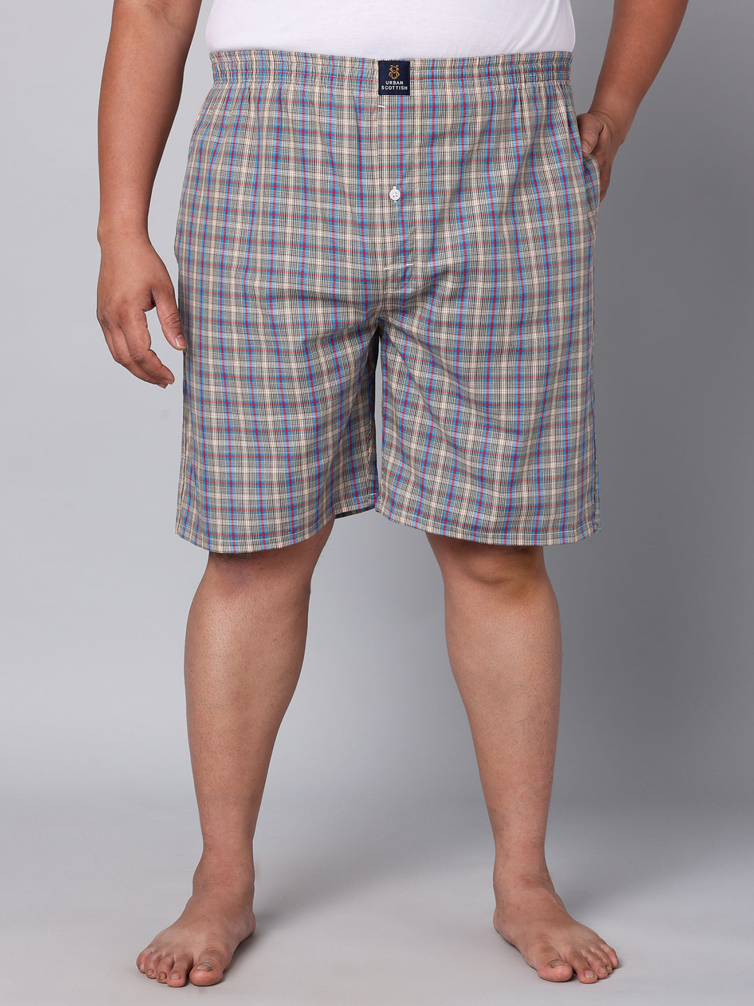 Elevate your everyday essentials with Urban Scottish Men's Plus Size Boxers. Crafted with premium quality 100% cotton fabric, these boxers offer exceptional comfort and breathability. The regular fit and mid-rise design ensure a flattering look for all body types, while the elastic closure provides a secure and adjustable fit. Featuring a stylish checks pattern in a vibrant multicolor, these boxers add a trendy touch to your wardrobe. The two Side Pockets design allows you to conveniently store your essentials. Suitable for casual occasions, these boxers are perfect for lounging at home or running errands. Invest in Urban Scottish Men's Plus Size Boxers for unmatched comfort and style.