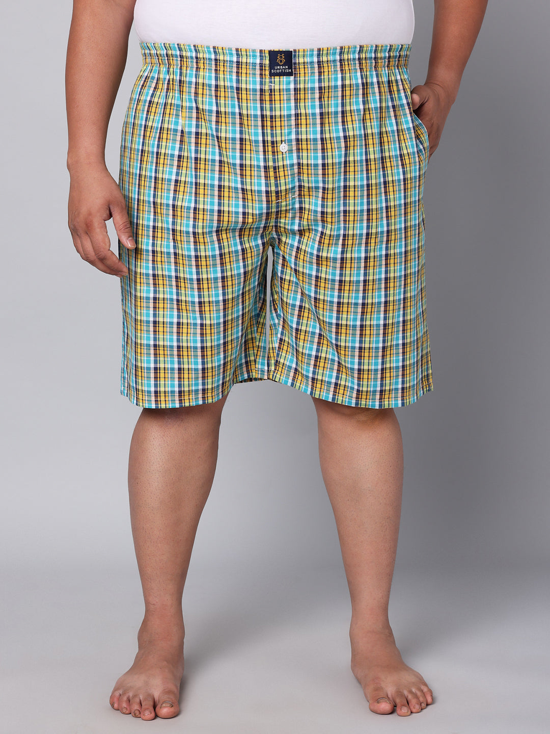 Elevate your everyday essentials with Urban Scottish Men's Plus Size Boxers. Crafted with premium quality 100% cotton fabric, these boxers offer exceptional comfort and breathability. The regular fit and mid-rise design ensure a flattering look for all body types, while the elastic closure provides a secure and adjustable fit. Featuring a stylish checks pattern in a vibrant multicolor, these boxers add a trendy touch to your wardrobe. The two Side Pockets design allows you to conveniently store your essentials. Suitable for casual occasions, these boxers are perfect for lounging at home or running errands. Invest in Urban Scottish Men's Plus Size Boxers for unmatched comfort and style.
