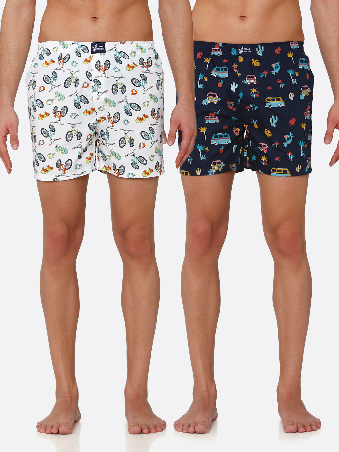 Trendy and chic, these multicoloured boxers (Navy Blue, White) from the house of Urban Scottish can be worn as sleepwear or inner wear. These printed boxers are made using the best quality of breathable cotton fabric and features elasticated waistband, which lets you wear them comfortably. A casual white tee when teamed with these mid thigh boxers will prove to be a worthy addition to your wardrobe.