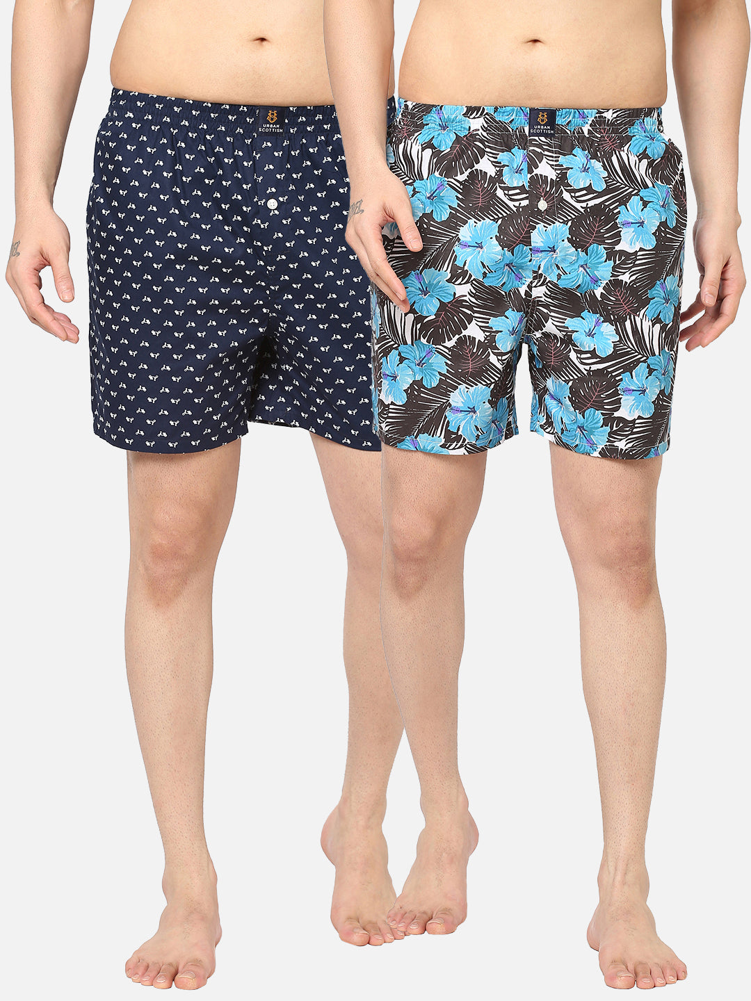 Bag these Multi-coloured Cotton Boxers ( Pack of 2 ) from Urban Scottish and flaunt yourself at poolside parties. Made with 100% Cotton fabric ensuring comfort and breathability all day. Offers a comfortable waist with above knee length for ease of movement. Feature pockets and waistband and has been elevated with a printed pattern. Team it with cool t-shirts for a complete look. Perfect for a casual look.