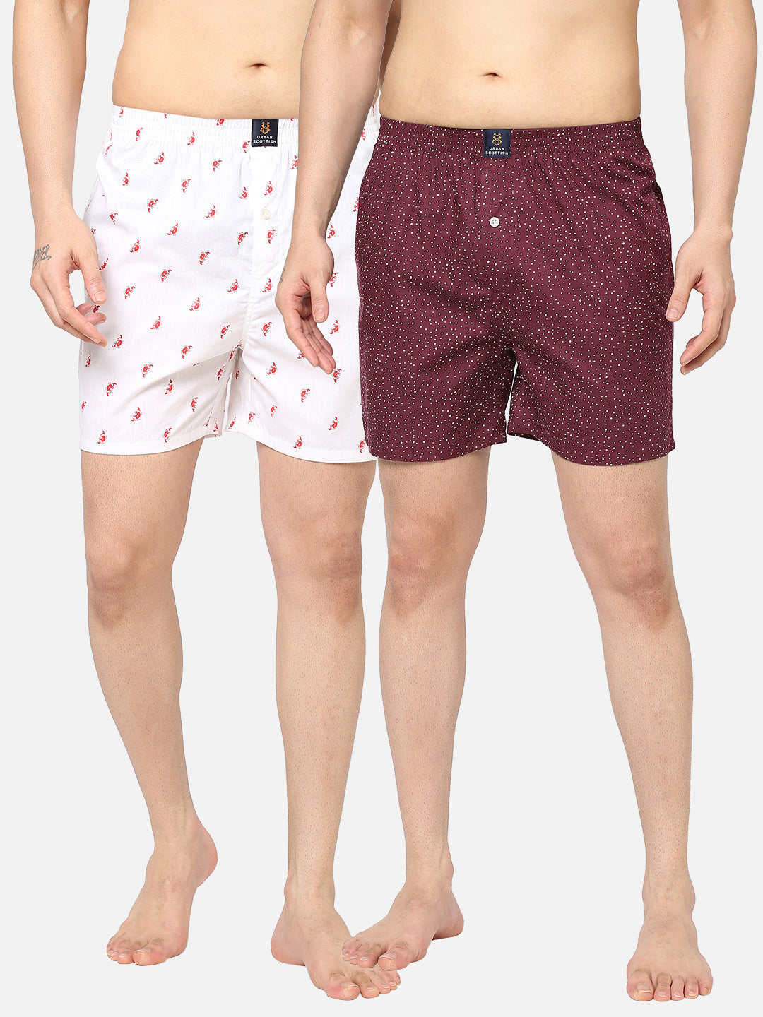 The best sporty boxers in today's market are these Multi-coloured Cotton Boxers ( Pack of 2 ) from Urban Scottish. Made with 100% Cotton fabric ensuring comfort and breathability all day. Offers a comfortable waist with above knee length for ease of movement. Feature pockets and waistband and has been elevated with a printed pattern. Team it with cool t-shirts for a complete look. Perfect for a casual look.