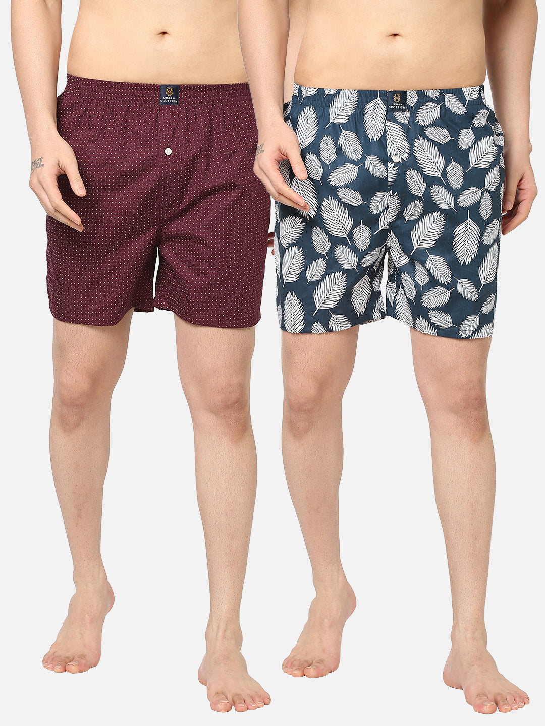 Add some contrasting pack of boxers to your wardrobe with these Multi-coloured Cotton Boxers ( Pack of 2 ) from Urban Scottish. Made with 100% Cotton fabric ensuring comfort and breathability all day. Offers a comfortable waist with above knee length for ease of movement. Feature pockets and waistband and has been elevated with a printed pattern. Team it with cool t-shirts for a complete look. Perfect for a casual look.