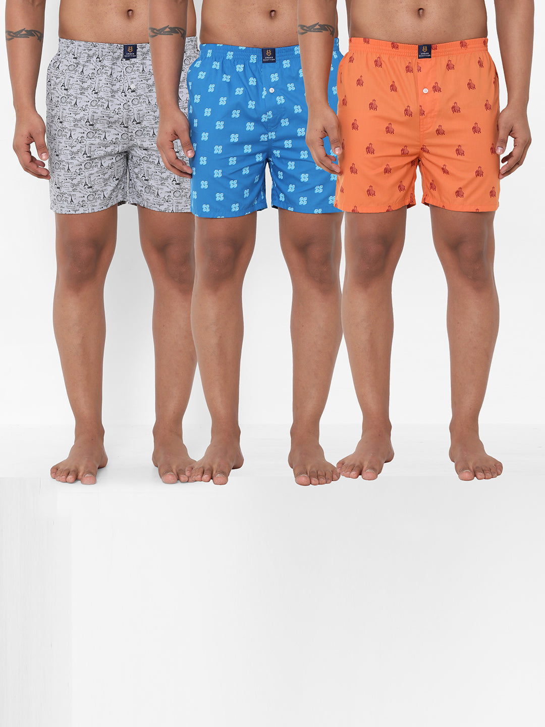 Lounge at home while looking absolutely stylish wearing these amazing pair of boxer from the brand Urban Scottish. It is a pack of three boxers. Each of them are designed with unique prints and feature an elasticated waistband for proper fitting. It comes with an attached logo of the brand on the waistband. The soothing colors are a must-have to your casual collection. Offers a regular fit and has a length above-knees. Made with pure cotton, it assures complete breathability and a comfort like no other. Team it with a solid t-shirt and slip-ons when you step out for a walk.