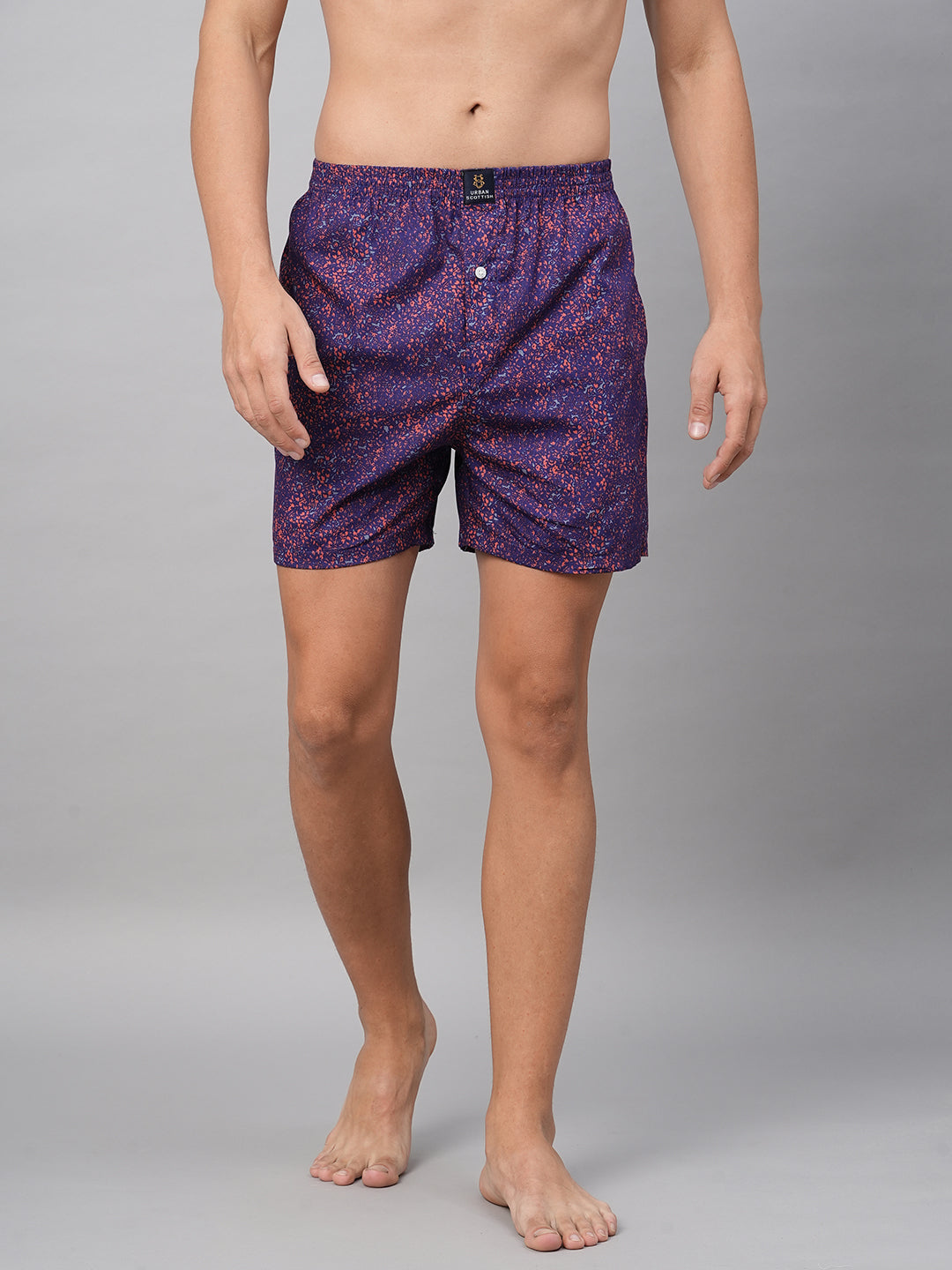 Blazon your reliant spirit with this relaxed Fit Black Printed Boxer Shorts from the latest arrival of Urban Scottish's Men's Collection of Comfort. Made of Light, ,breezy, airy & Soft 100% Cotton fabric for the cozy and rich feels all day long. Adorned with gleaming and glossy prints . Inner Elastic waistband and 2-side Pocket are the modest involvements with skilled tailoring for easy spirit. To match with Light Color Round Neck T-shirts and relaxed footwears. Authentic for Jogging, Nighwalks, Casual Roamings and Sleeptime. Model is wearing 'M' size