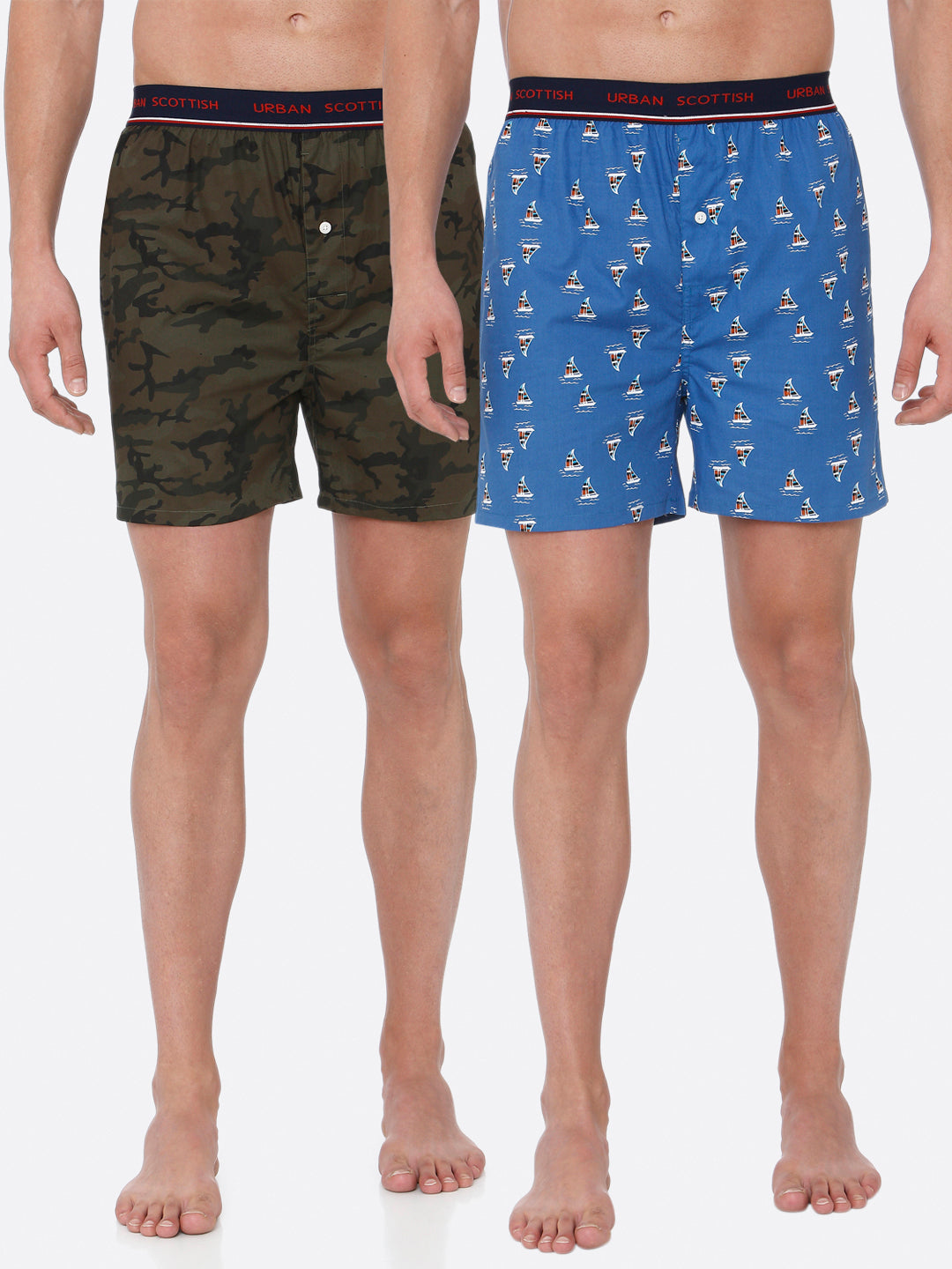 Feel comfortable with these boxers from the house of Urban Scottish. The premium fabric will give you fashionable look and make you feel comfortable. Pack of two printed boxers in blue and brown, each has an inner elasticated waistband, slip-on closure.