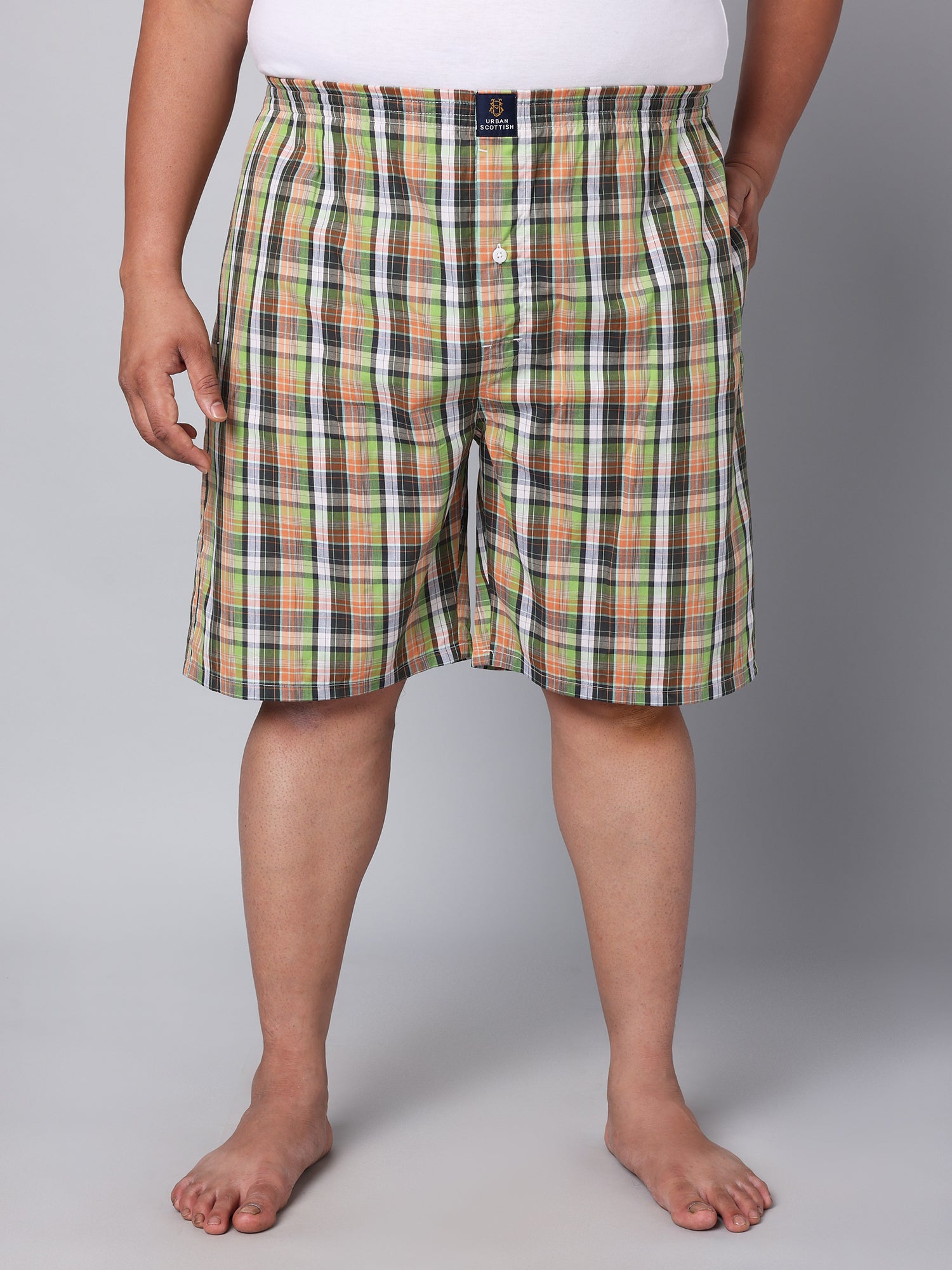 Elevate your underwear collection with the Urban Scottish Men's Plus Size Boxers. These stylish and comfortable boxers are designed to offer the perfect combination of fashion and functionality. Crafted from premium quality 100% cotton fabric, they provide exceptional comfort and breathability, making them ideal for everyday wear. The regular fit and mid-rise design ensure a flattering look for all body types, while the elastic closure provides a secure and adjustable fit. Featuring a classic checks pattern in vibrant orange and green colors, these boxers add a trendy and fashionable touch to your outfit. The two side pockets allow you to conveniently store your essentials. Suitable for casual occasions, these boxers are perfect for lounging at home or running errands. Invest in the Urban Scottish Men's Plus Size Boxers for unmatched comfort and style.