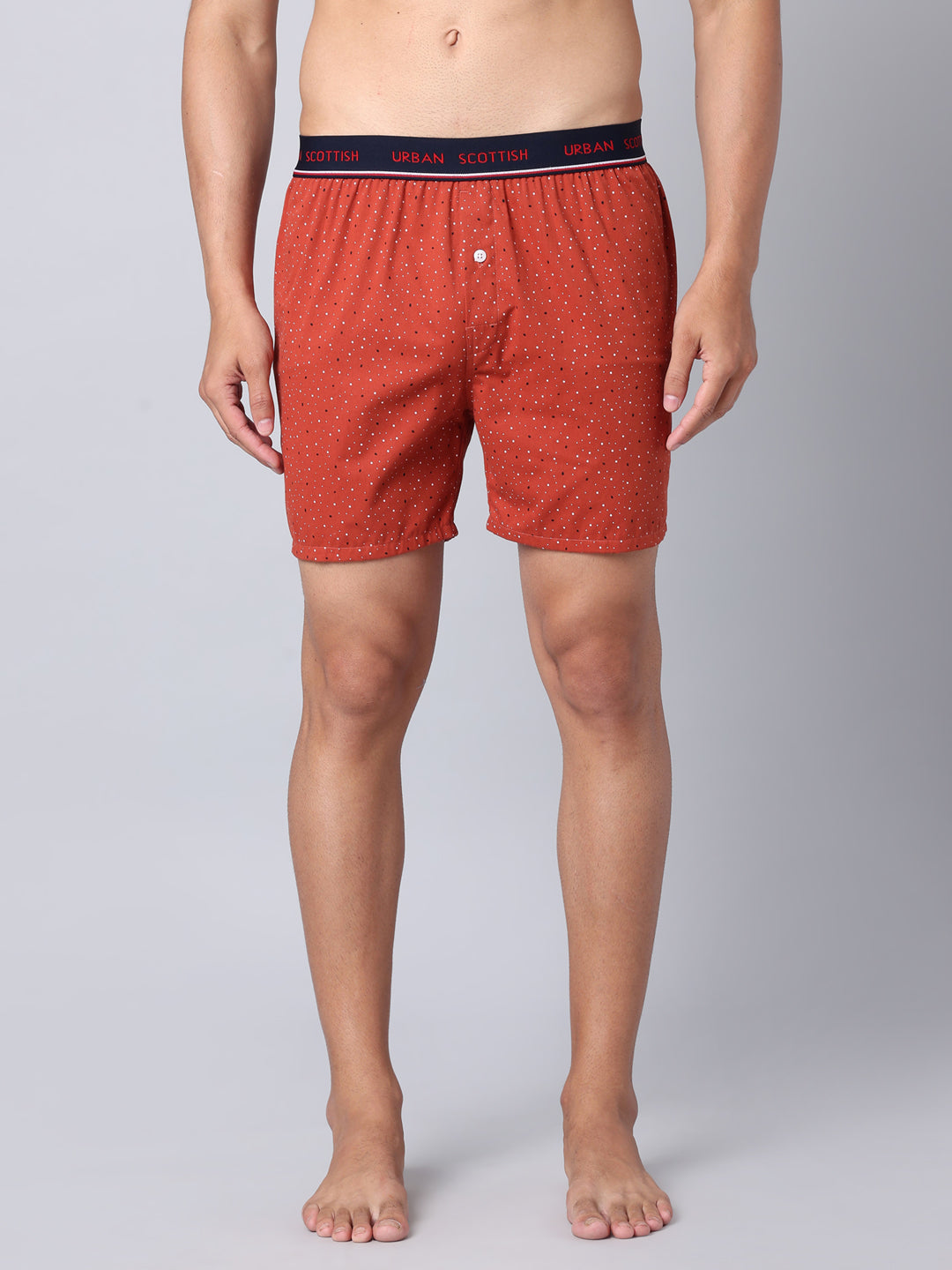 Elevate your loungewear collection with the Urban Scottish Men's Boxer. Crafted from premium quality 100% cotton fabric, these boxers offer unbeatable comfort and breathability for everyday wear. The regular fit and mid-rise design ensure a flattering silhouette for all body types, while the outer elastic closure provides a secure and adjustable fit. Featuring a bold red color and a stylish printed pattern, these boxers add a trendy and vibrant touch to your outfit. Perfect for casual occasions, whether you're relaxing at home or running errands, the Urban Scottish Men's Boxer is a must-have addition to your wardrobe. Experience unmatched comfort and style with Urban Scottish.