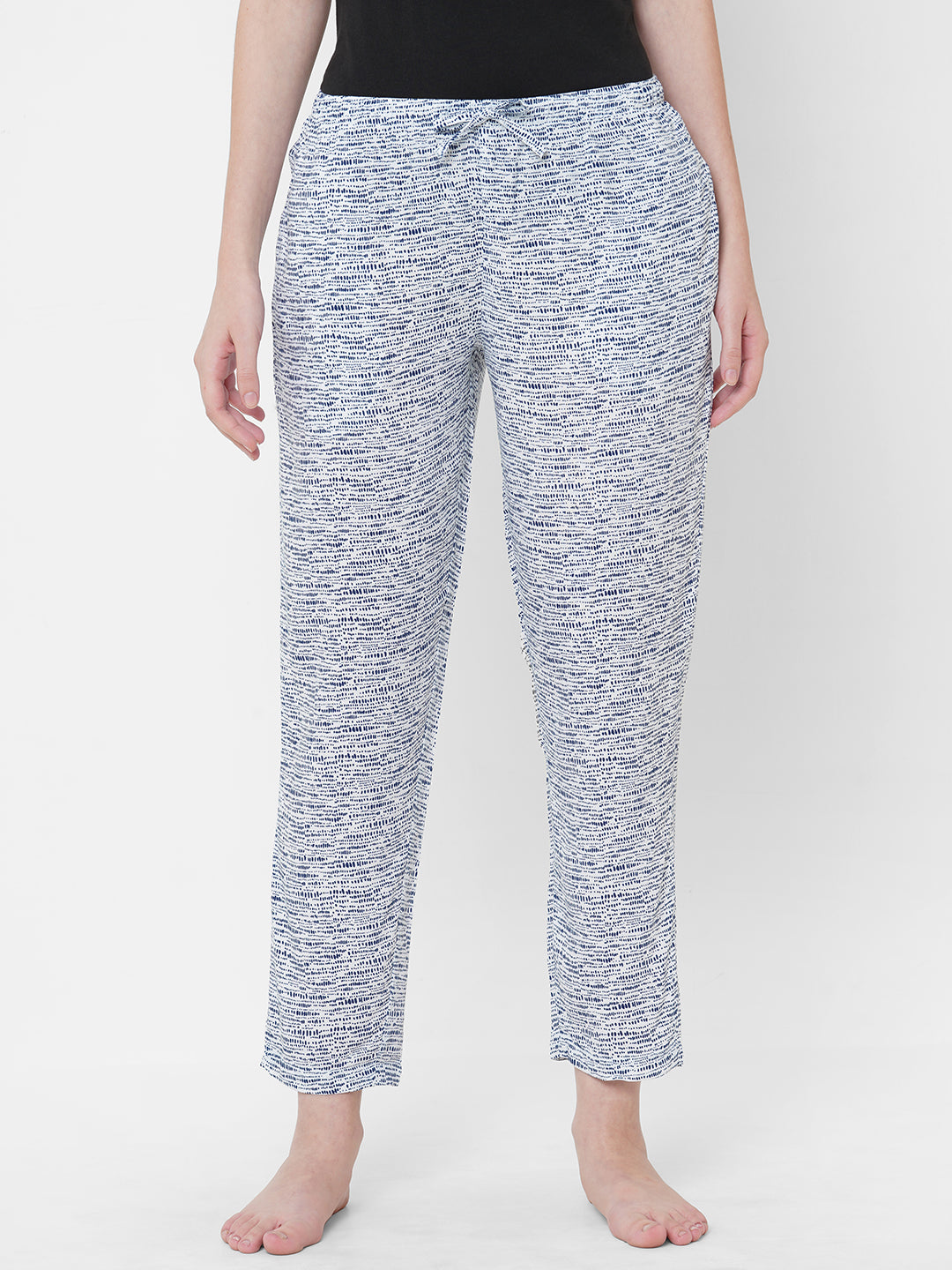 Women's Printed, Blue, Viscose, Regular Fit, Elasticated, Waistband, Pyjama With Side Pockets