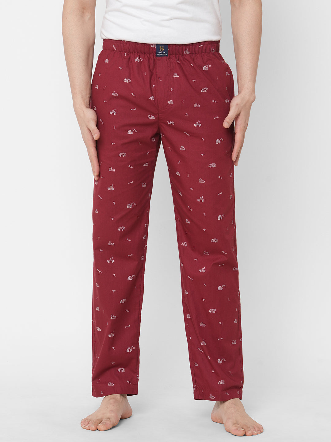 Lounge around the house in style and comfort by wearing this printed maroon pyjama by Urban Scottish. The lightweight and breezy woven cotton fabric of this sleepwear ensures soft and smooth feel to your skin. It has elastic waistband and side pockets, which gives it a perfect functional and finishing touch. It pairs with almost everything which is there in your loungewear collection. This pyjama promises you great comfort and style, while you doze off to a good night's sleep. Shop for this cool sleepwear now.